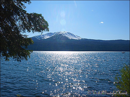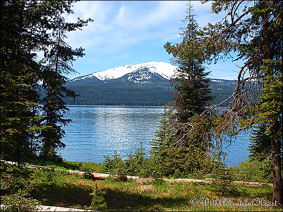Yesterday we moved to Odell Lake, a little over an hour away from where we were. This lake is absolutely breathtaking in its beauty, too. I am sitting in the sun outside the lodge as I write. I’m connected to power on the log wall of the lodge and enjoying the benefits of their Wi-Fi. It would have been fun to write to you from the beautiful, old lodge at Diamond Lake and maybe that will happen some other day! We are camping with three families from our church. I will share more about this wonderful place soon. As I write, a little chipmunk keeps coming close to me. I’m sure he is hoping a wonderful snack will fall out of my pocket! Just a bit ago a big black bird 'dive-bombed' my computer bag, obviously in hopes of finding some sweet treat inside! There is so much to tell you! In the meantime, I really do need to get back to camp – I need to get back to ‘roughing’ it again!